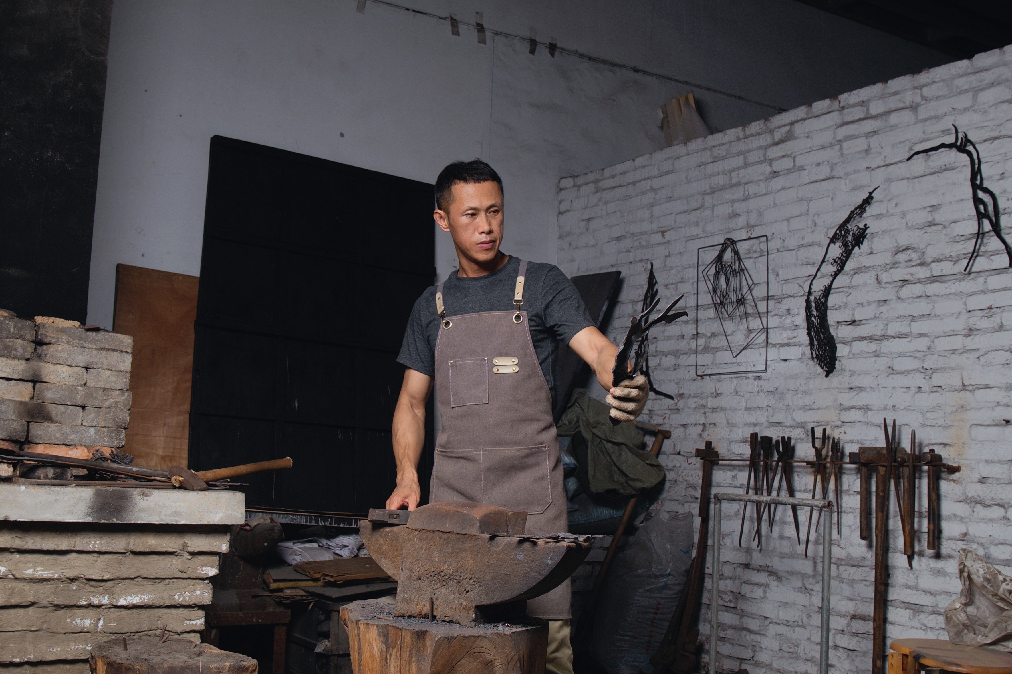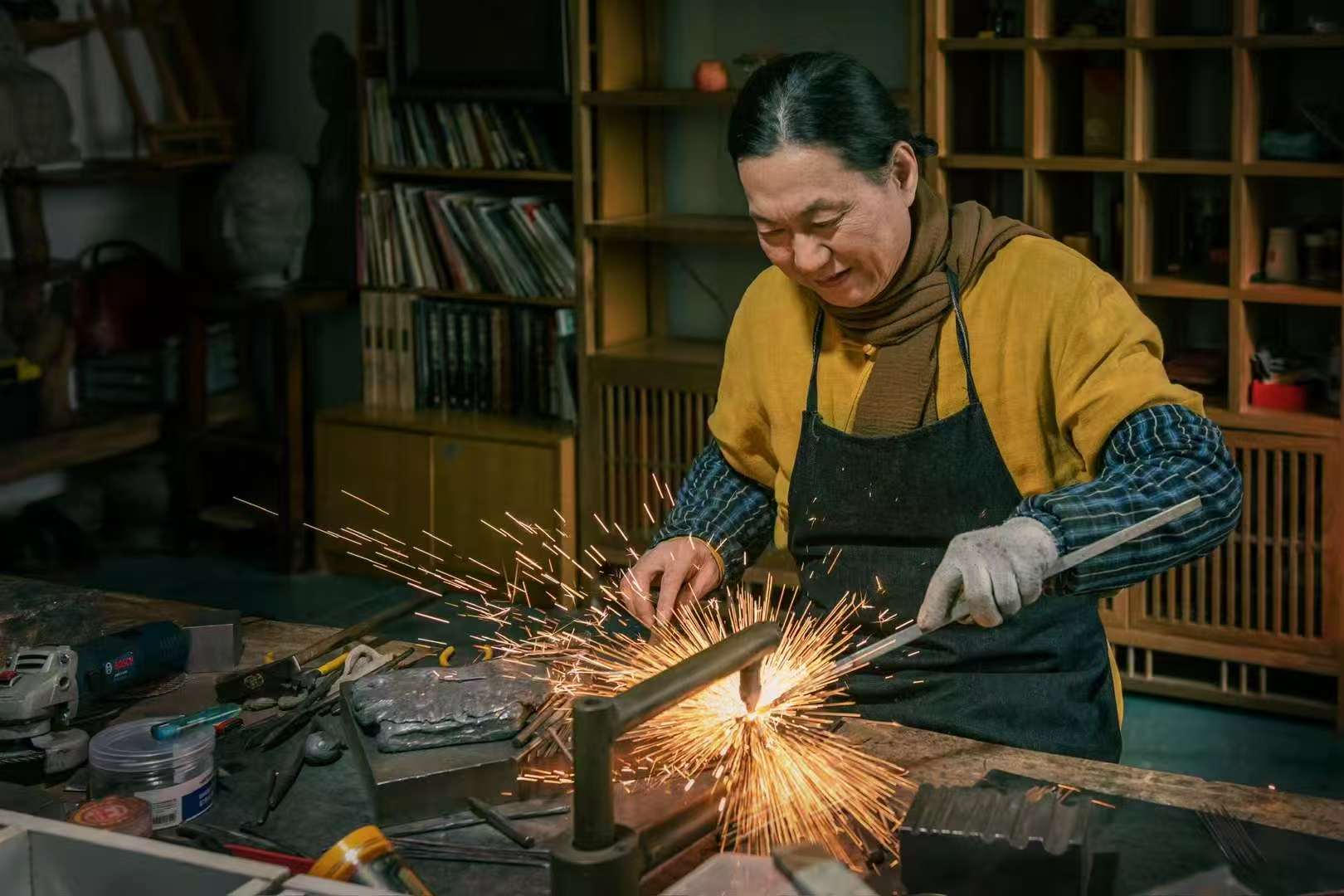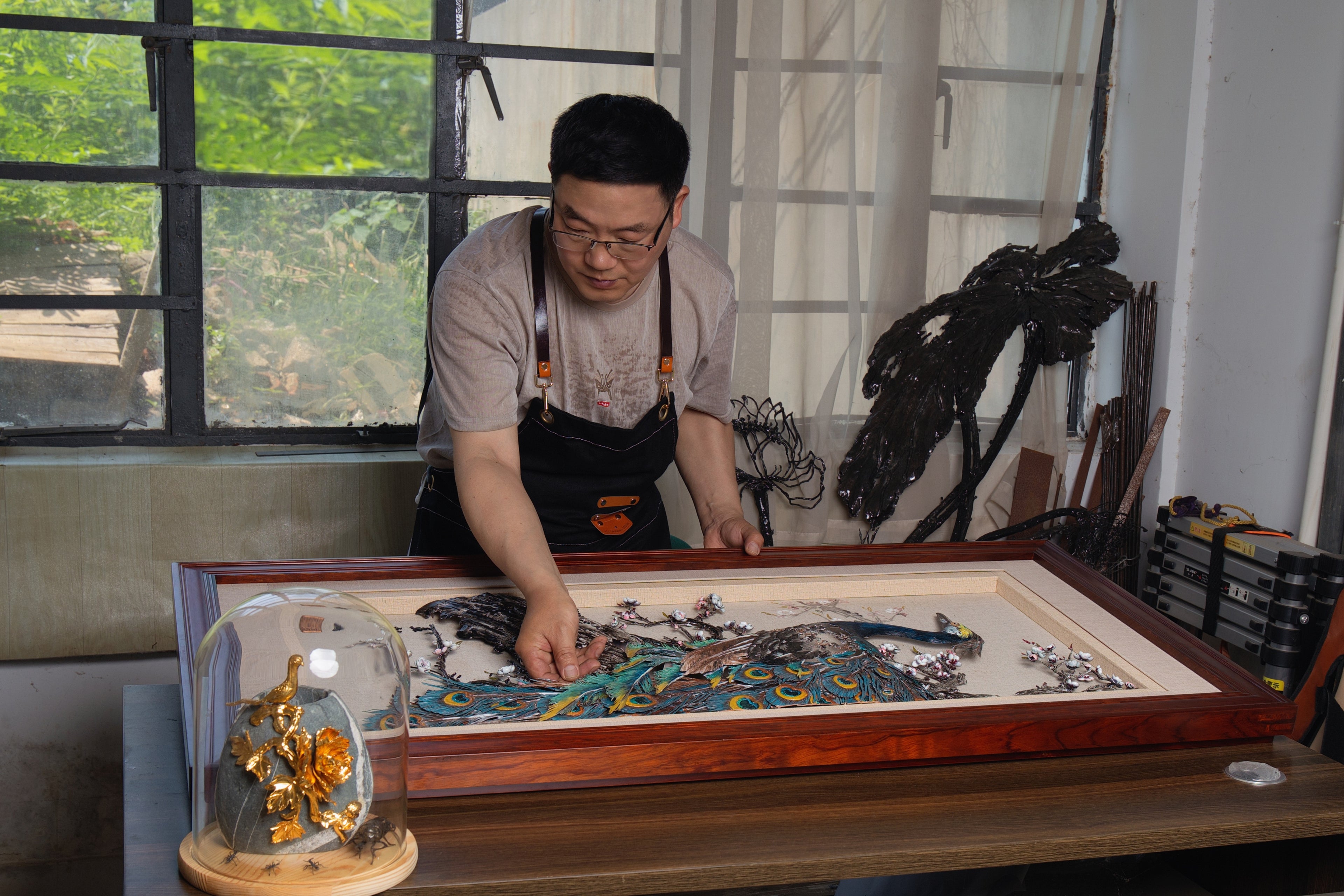 This is the core of Wuhu iron painting: transforming flat iron into dimensional forms through thousands of controlled blows. Two complementary methods are used: