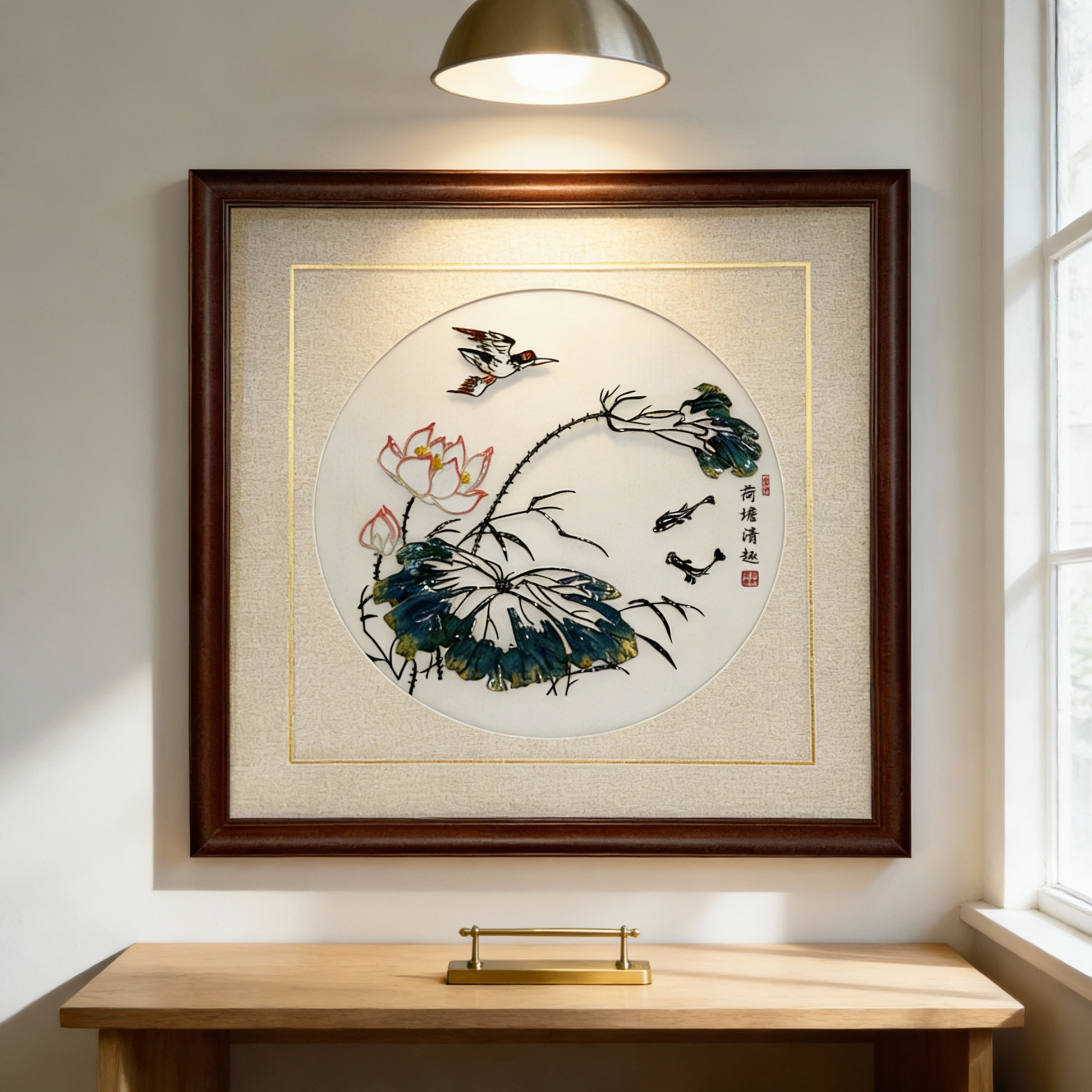 “Lotus Pond by Moonlight” brings a quiet, poetic corner of nature into the home, blending traditional Chinese symbolism with refined contemporary wall décor.