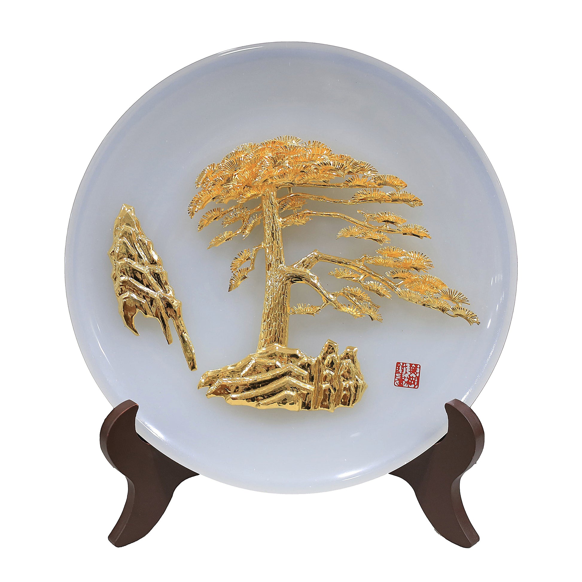 Meaning: In Chinese culture, the Welcoming Pine symbolizes hospitality and resilience. The golden finish adds layers of meaning, representing prosperity, good fortune, and nobility. This piece not only embodies traditional Chinese artistry but also serves as an auspicious ornament, conveying wishes for a warm welcome to guests and a thriving, prosperous life.